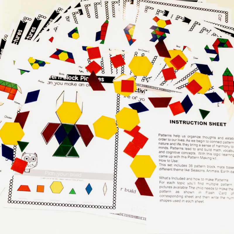 This set includes 4 pattern block mats based on different theme like Seasons, Animals, Earth day etc.