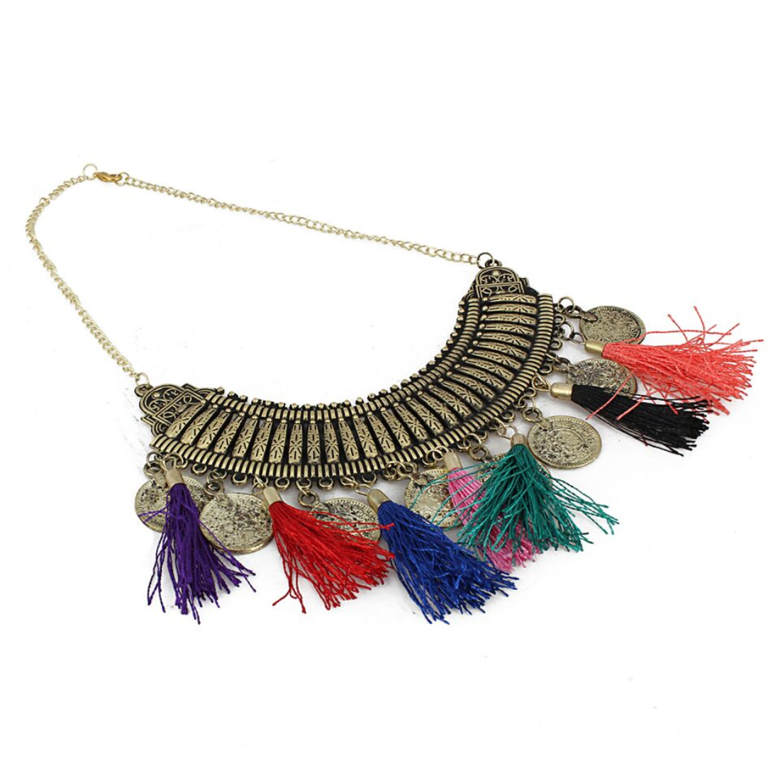 Oxidized Golden Multicolour Tassels Necklace,
