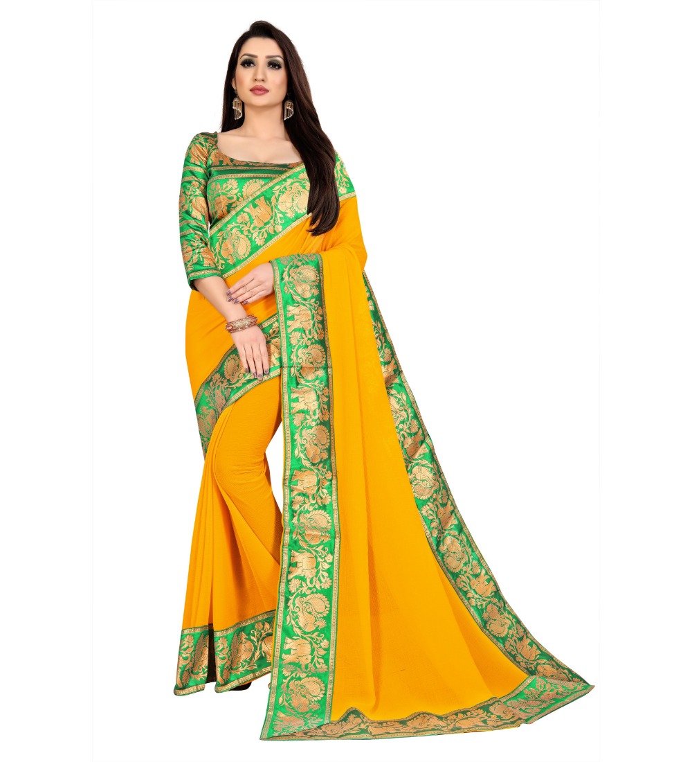 Women's Chiifon Saree, Jacquard Blouse Saree(Yellow,5-6 Mtrs)
